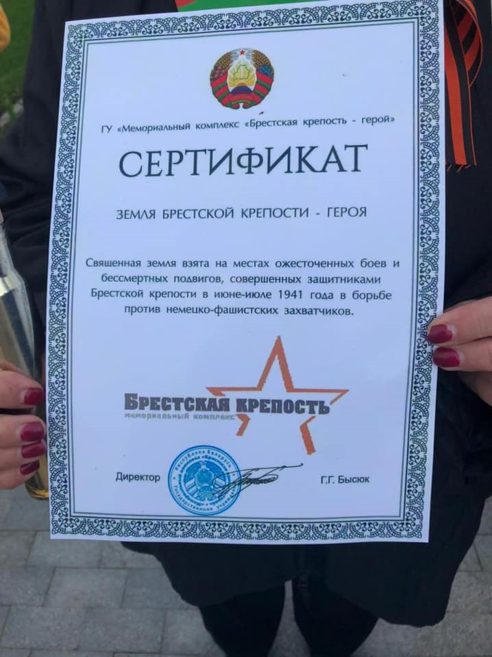 Сегодня, в День Победы, в Музей истории города торжественно передана капсула с землёй из Бреста.